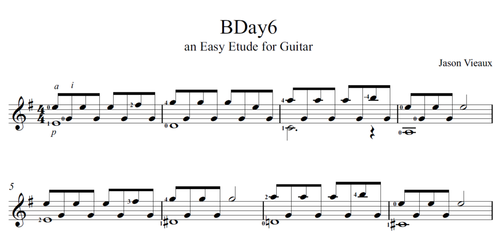 Bday6 for solo guitar by Jason Vieaux (sheet music) $7$7https://schema.org/InStockusdJason Vieaux - Classical GuitaristJason Vieaux - Classical GuitaristBuy thisSize88.3 KBLength3 pagesAdd to wishlist New wishlistShare on XShare on Facebook Copy linkCopy product URL